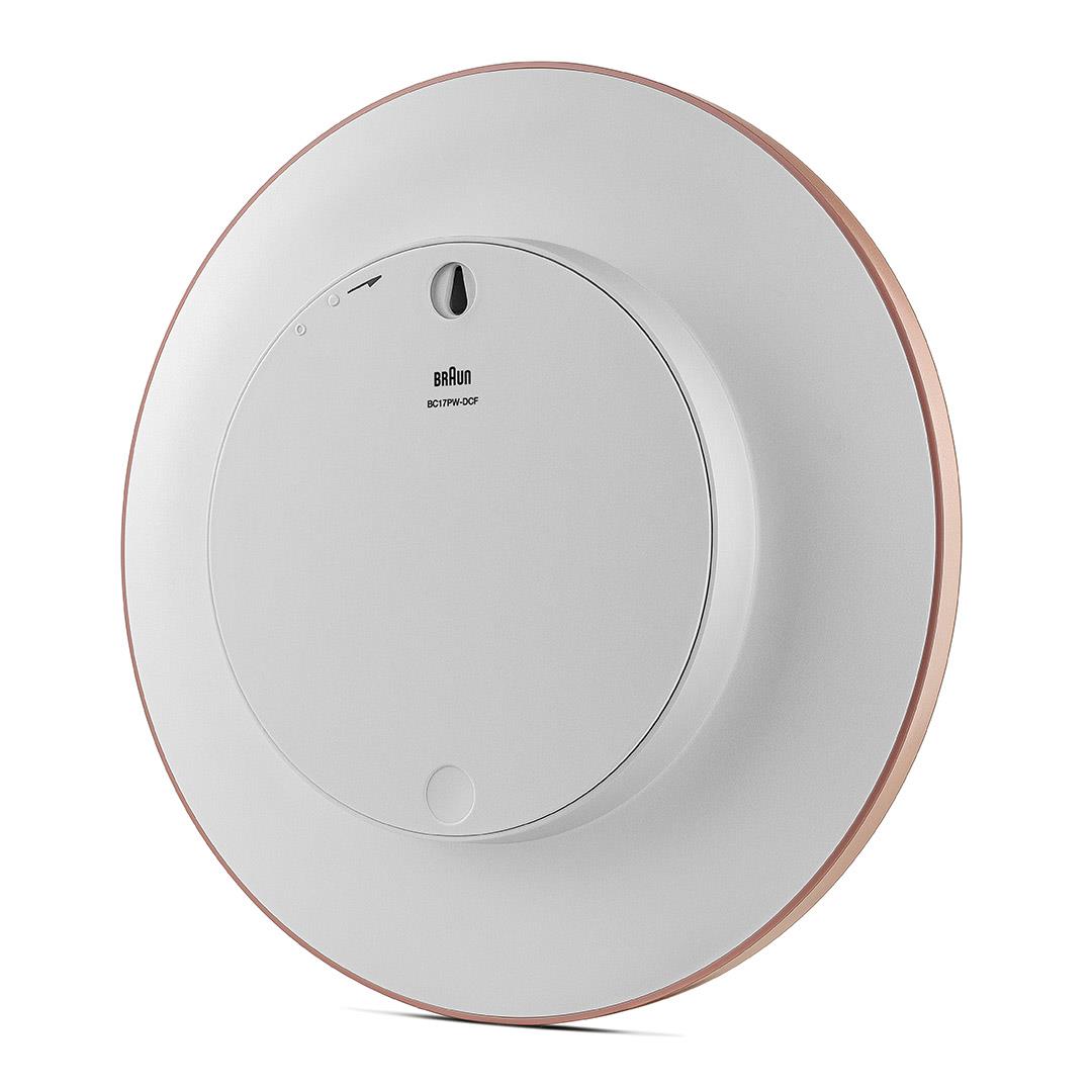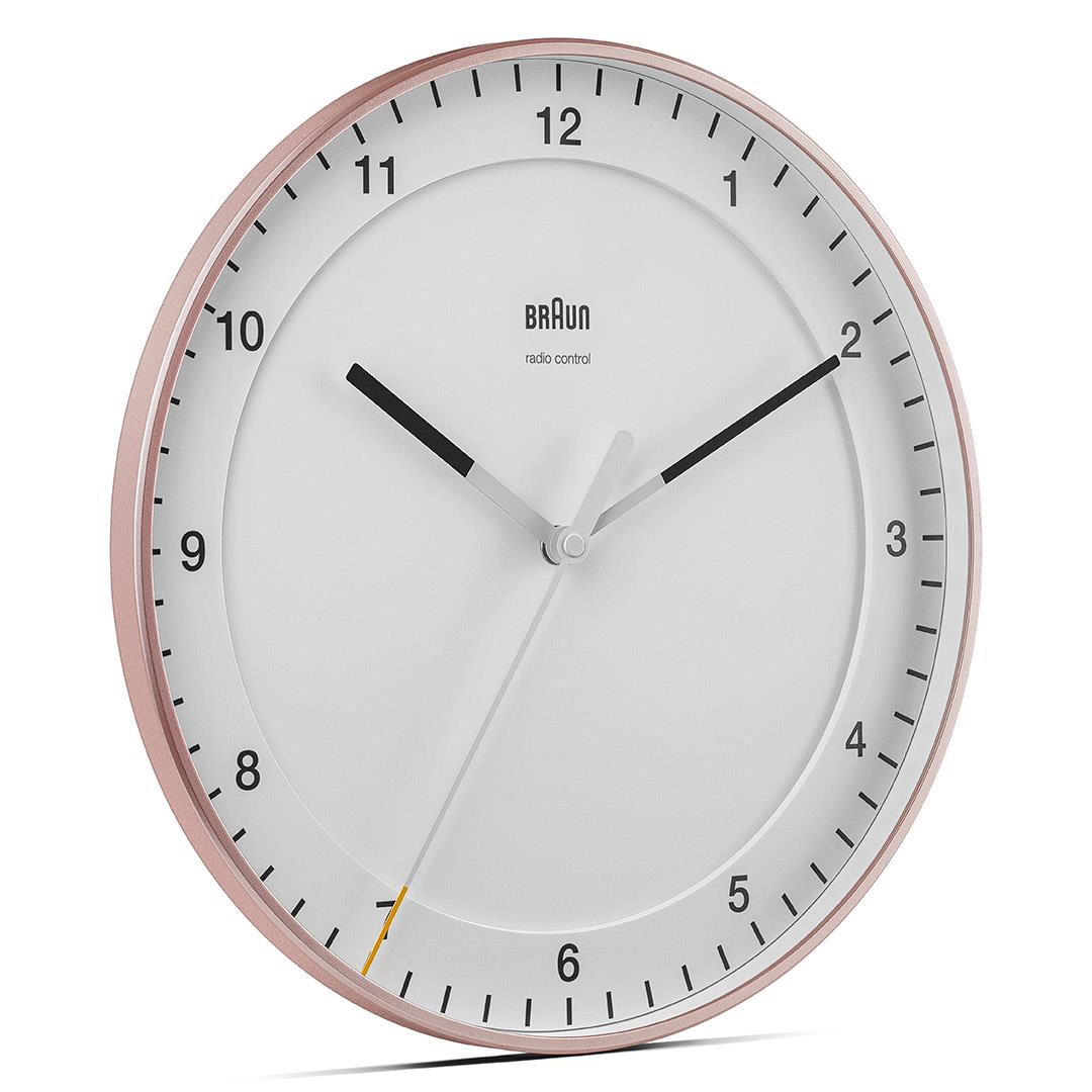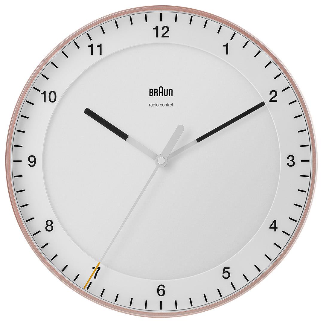 Braun Classic Radio Controlled Large Analogue Wall Clock For Central European Time Zone (DCF/GMT+1) with Silent Sweep Movement, Easy To Read, 30cm Diameter in Rose and White, model BC17PW-DCF.