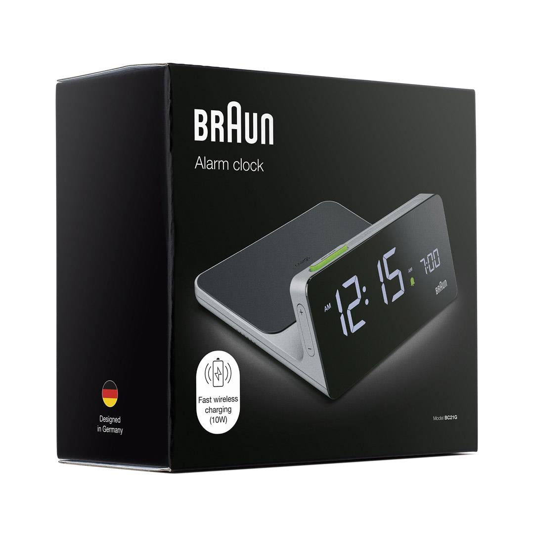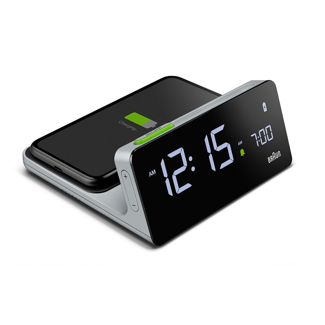 The BC21 Wireless Charging Clock has been designed with a focus on innovation and function. Its silhouette is derived from the DN 40, one of Braun’s early digital alarm clocks designed by Dieter Rams and Dietrich Lubs in 1976. The form of the BC21 is reminiscent of a classic Braun product while its function has been redefined for a modern user.