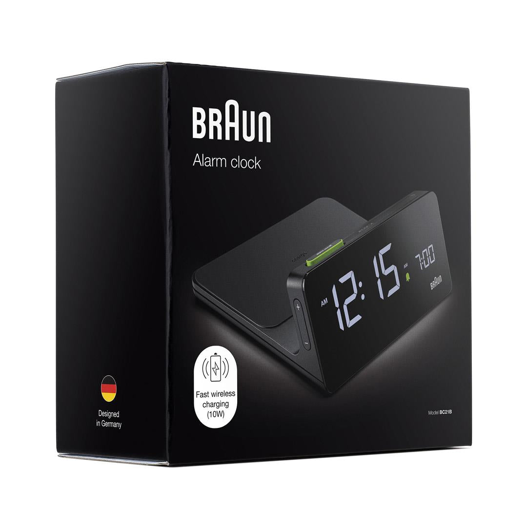 The BC21 Wireless Charging Clock has been designed with a focus on innovation and function. Its silhouette is derived from the DN 40, one of Braun’s early digital alarm clocks designed by Dieter Rams and Dietrich Lubs in 1976. The form of the BC21 is reminiscent of a classic Braun product while its function has been redefined for a modern user.